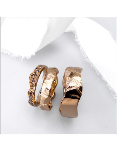 rechts: Rotgold poliert mit Diamant im Princess Cut
